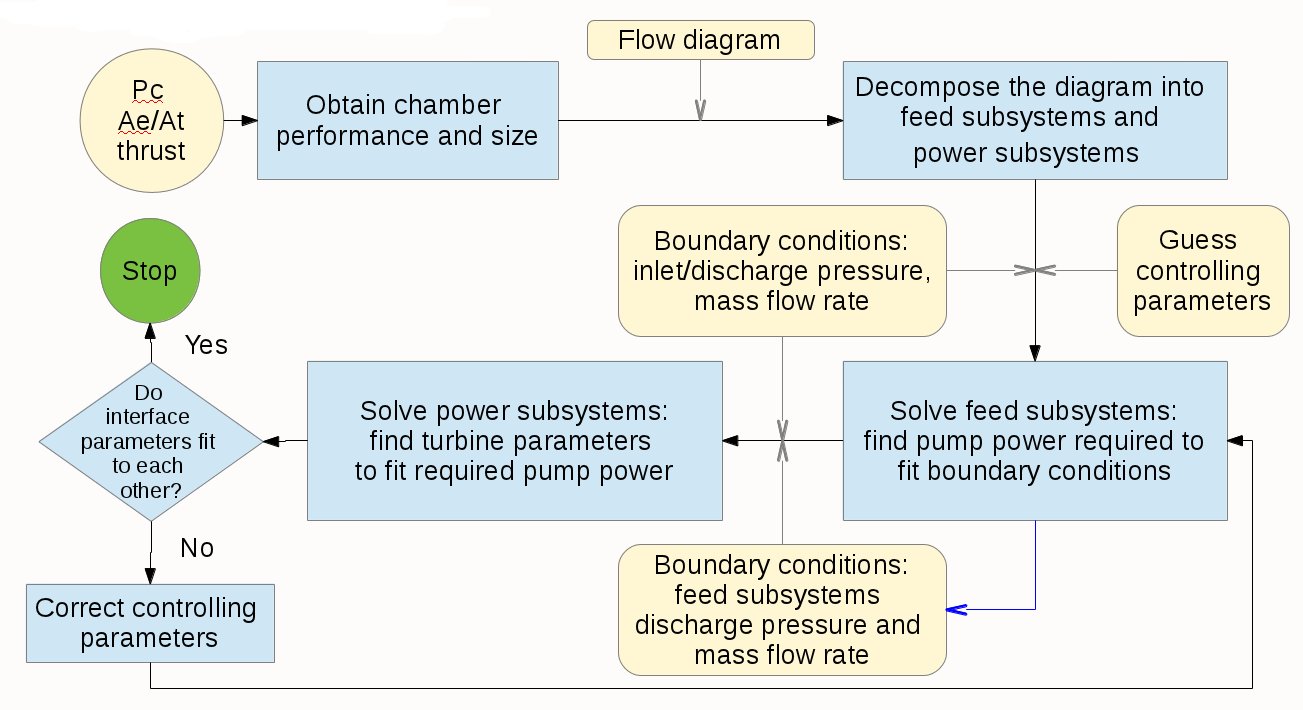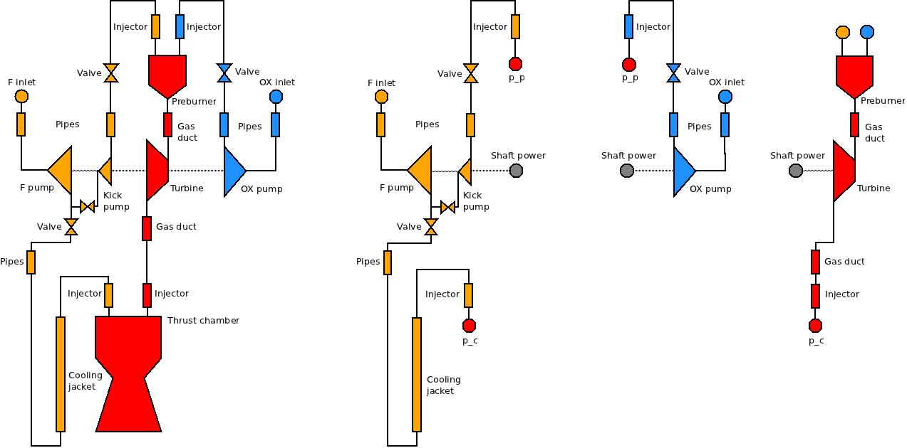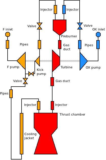 For example, the following flow diagram represents the SC cycle with oxidizer-rich prebirner (click the image to enlarge it):