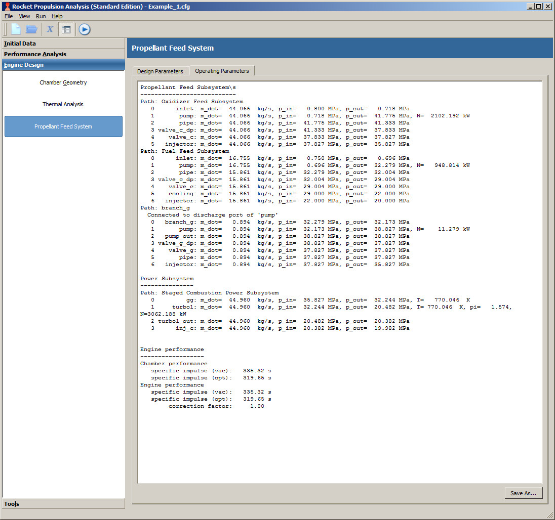Cycle analysis module utilizes the results of performance analysis and thrust chamber sizing, therefore the user has to provide all design parameters required for performance analysis and thrust chamber sizing.